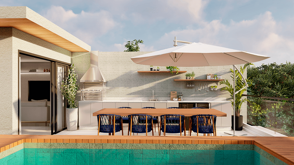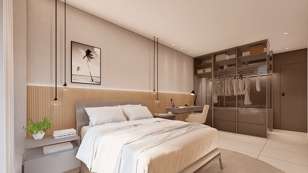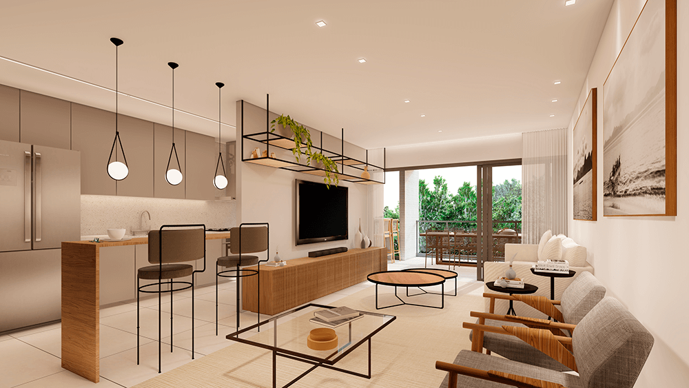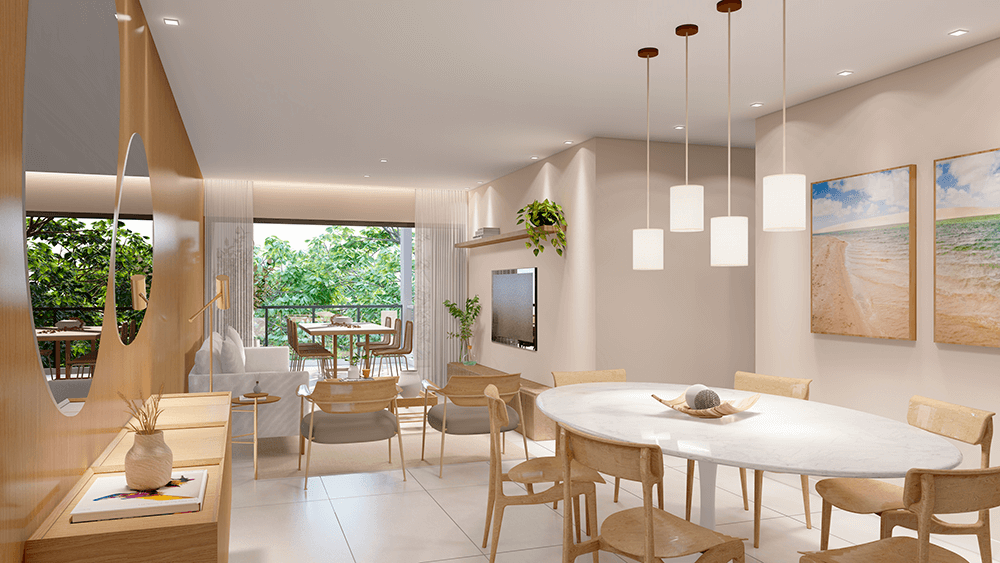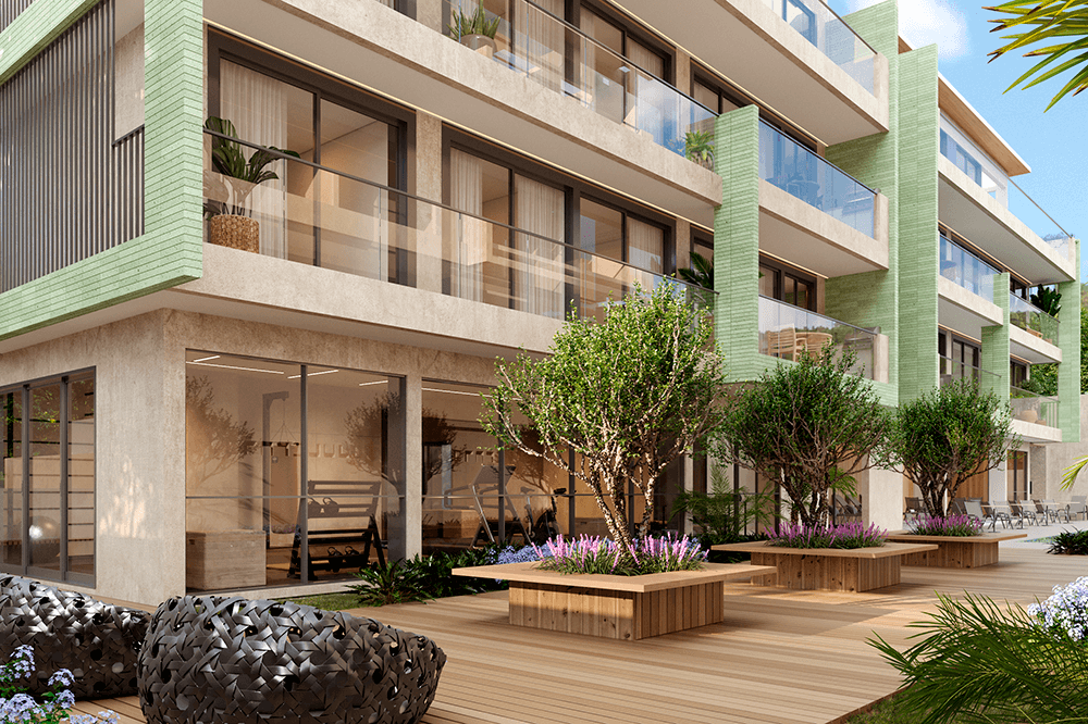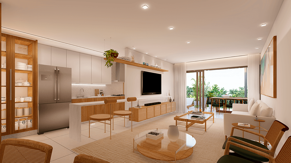 Todas as perspectivas, plantas, fotos e imagens contidas neste material publicitário são meramente ilustrativas, seus elementos de composição podem sofrer alterações de cor, forma, textura e tamanho. 2. As unidades privativas e áreas comuns do projeto serão entregues obedecendo ao projeto executivo e conforme as especificações constantes do Memorial Descritivo, que prevalecerá em caso de conflito com qualquer outro material ou informação relativa ao empreendimento, e este poderá sofrer alteração sem prévio aviso em função de posturas municipais, legais e concessionárias. 3. No interesse do bom andamento da obra, a construtora poderá substituir quaisquer especificações de material descritas neste Memorial Descritivo por similar de mesma qualidade, sempre que encontrar dificuldades em sua aquisição, a fim de evitar atraso em seu cronograma. As padronagens serão definidas de modo a obter-se harmonia e bom gosto na concretização final da unidade. 4. A decoração, iluminação, equipamentos e mobiliário das unidades privativas são apenas sugestões, não fazendo parte integrante da unidade. 5. Os equipamentos, mobiliários e elementos decorativos (quadros, tapetes, livros, almofadas, cortinas) constantes do presente material são referenciais, podendo sofrer revisão de modelos, especificações e quantidades, sem prévio aviso, não sendo entregues os utensílios, adornos e acessórios eventualmente previstos nas imagens. A incorporadora não se responsabiliza por elementos decorativos representados nas ilustrações artísticas. 6. O empreendimento será entregue com a vegetação implantada por meio de mudas, conforme especificação do projeto paisagístico. As imagens apresentadas nos desenhos, artes, perspectivas, anúncios, ou qualquer outra forma de veiculação representam artisticamente a fase adulta das espécies, que será atingida ao longo do tempo. 7. As imagens, ilustrações, plantas humanizadas, maquetes e tour virtual referentes ao empreendimento apresentados no stand de vendas, folder, material publicitário, outdoors, anúncios ou qualquer outra forma de veiculação são meramente ilustrativos, podendo apresentar variações em relação à obra final em função do desenvolvimento dos projetos executivos, da necessidade de adequações técnicas, ou do atendimento a postulados legais. 8. As vistas apresentadas nas imagens são meramente ilustrativas, podendo não retratar a realidade do local do empreendimento. 9. As unidades serão entregues com esquadrias entre os ambientes abertos e fechados, conforme projeto aprovado na Prefeitura Municipal e Corpo de Bombeiros. 10. Na planta tipo, o layout seguirá o disposto neste material como planta padrão. 11. Não serão admitidas modificações nas unidades ao longo do andamento das obras. 12. A configuração e os níveis da implantação do empreendimento estão sujeitos a alterações decorrentes de exigências técnicas e estruturais, ao atendimento das posturas municipais, concessionárias e condições do entorno. 13. As imagens de áreas privativas podem possuir configurações diferentes do padrão do empreendimento, no que diz respeito à opção de planta e acabamentos, rebaixos, sancas decorativas, mobiliários e artigos decorativos, não sendo parte integrante do contrato. Para informações sobre o padrão do apartamento, consultar o Memorial Descritivo. 14. As áreas de lazer, vias, vagas e circulação do empreendimento estão sujeitas a alterações decorrentes das exigências das posturas municipais, concessionárias e condições do local. 15. Eventualmente, para atendimento de necessidades técnicas, poderão ser executados shafts e/ou enchimentos, bem como poderão ser alteradas as posições de peças sanitárias. 16. A incorporadora não se responsabiliza pelas construções vizinhas ao empreendimento. Itens como acréscimo nas edificações existentes no entorno, aberturas de janelas, alterações de afastamentos, entre outras condições dos imóveis de terceiros podem ser verificados no local, cabendo ao Poder Público fiscalizar a regularidade das construções vizinhas ao empreendimento. 17. As informações contidas em todo material publicitário veiculado são meramente ilustrativas, não se configurando como parte de qualquer instrumento legal, podendo, inclusive, ser alteradas sem prévio aviso. 18. Memorial de Incorporação Imobiliária registrado sob o R-5 da matrícula 110849, em 11/04/2023, no 2º Ofício do Registro de Imóveis da cidade do Rio de Janeiro